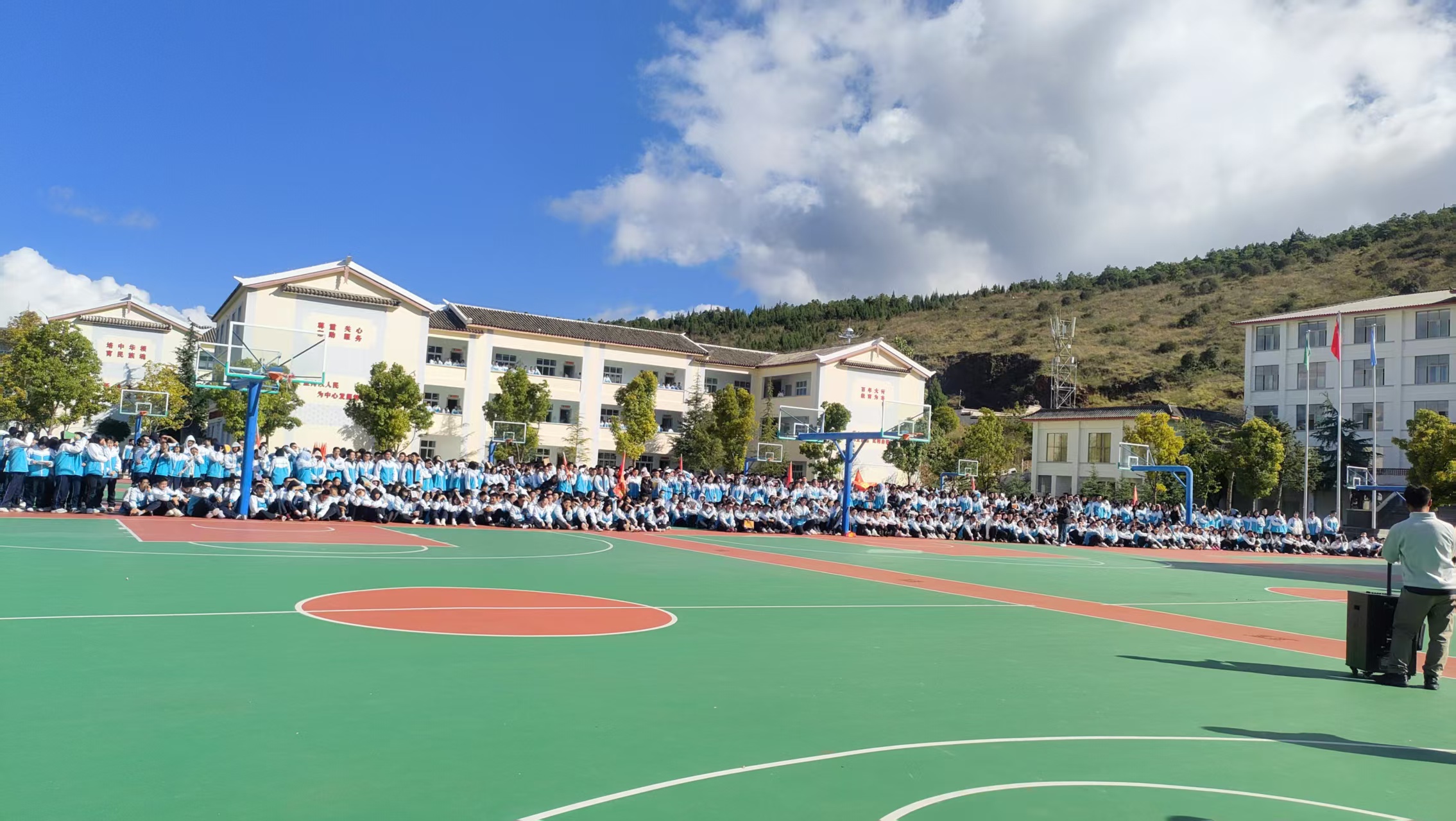 当第二声疏散哨声响起时,宿舍长立即配合德育教官,组织同学们按照既定疏散路线有序撤离宿舍。撤离过程中,大家严格遵循 “不慌张、不奔跑、不拥挤” 的原则,在教官引导下同学们沿着楼梯快速向操场集合点疏散。最终,全体住宿生安全、有序地抵达操场,圆满完成了宿舍区地震疏散任务。