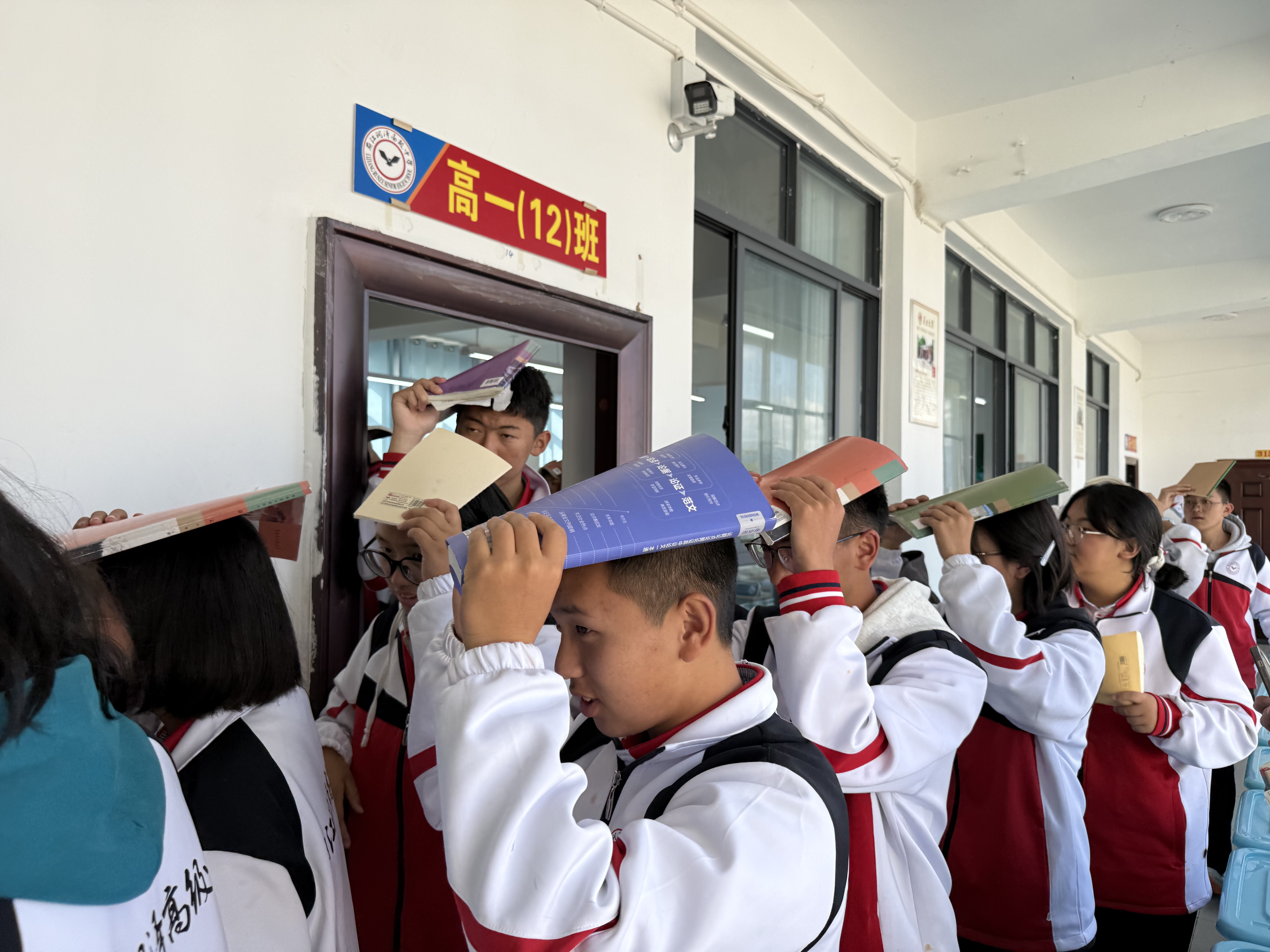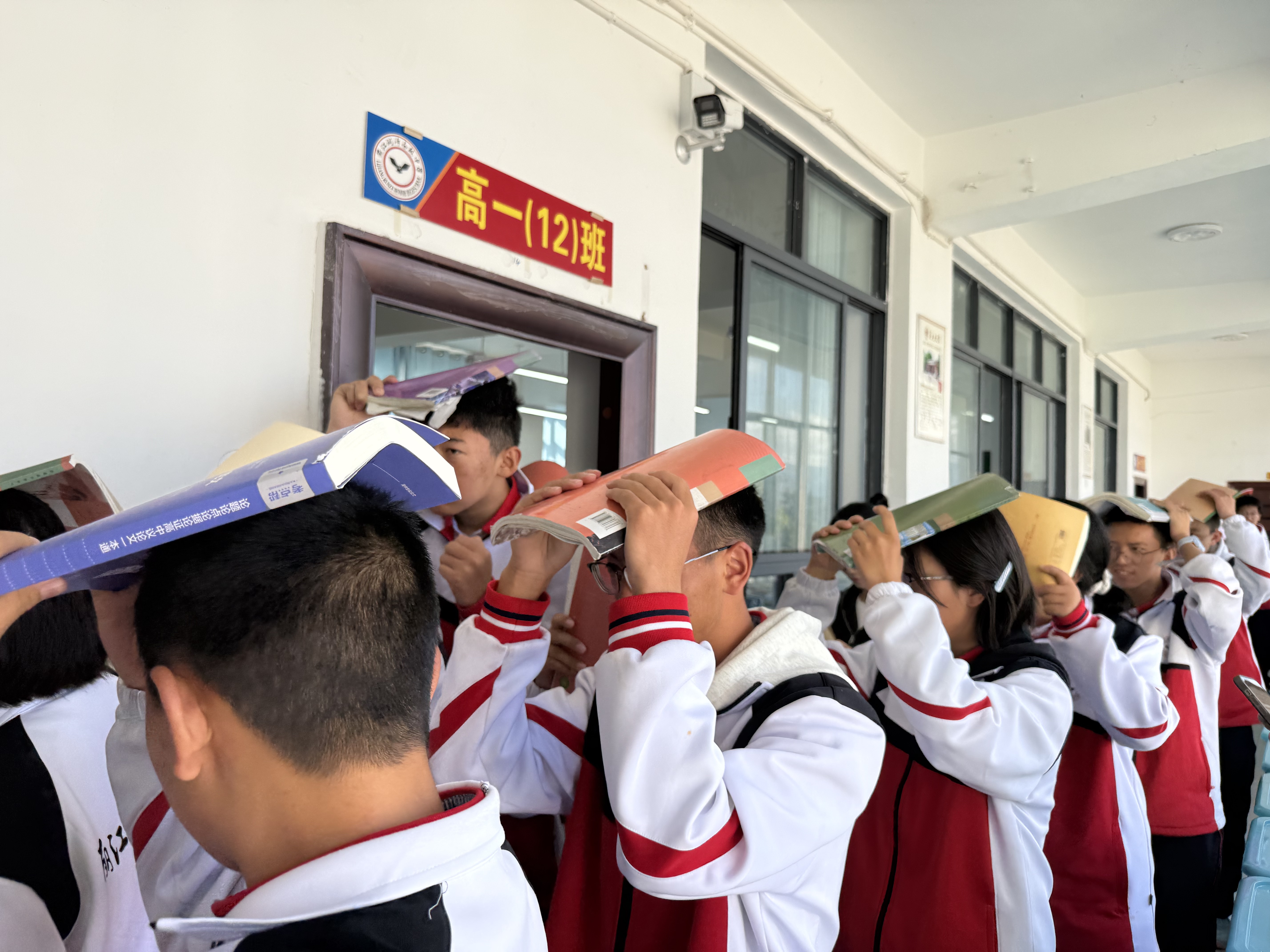 下午 13 点 59 分,宿舍区内响起了地震演练的第一声哨声,一场与 “时间赛跑” 的地震应急避险演练随即展开。听到哨声后,同学们开展室内避险:大家立即停止手中活动,迅速躲到床铺下方、墙角等坚固且不易被砸伤的安全区域,双手抱头保护头部和颈部,保持冷静等待疏散指令。